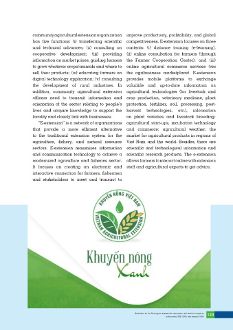 sell their products; (iv) educating farmers on the agribusiness marketplace). E-extension